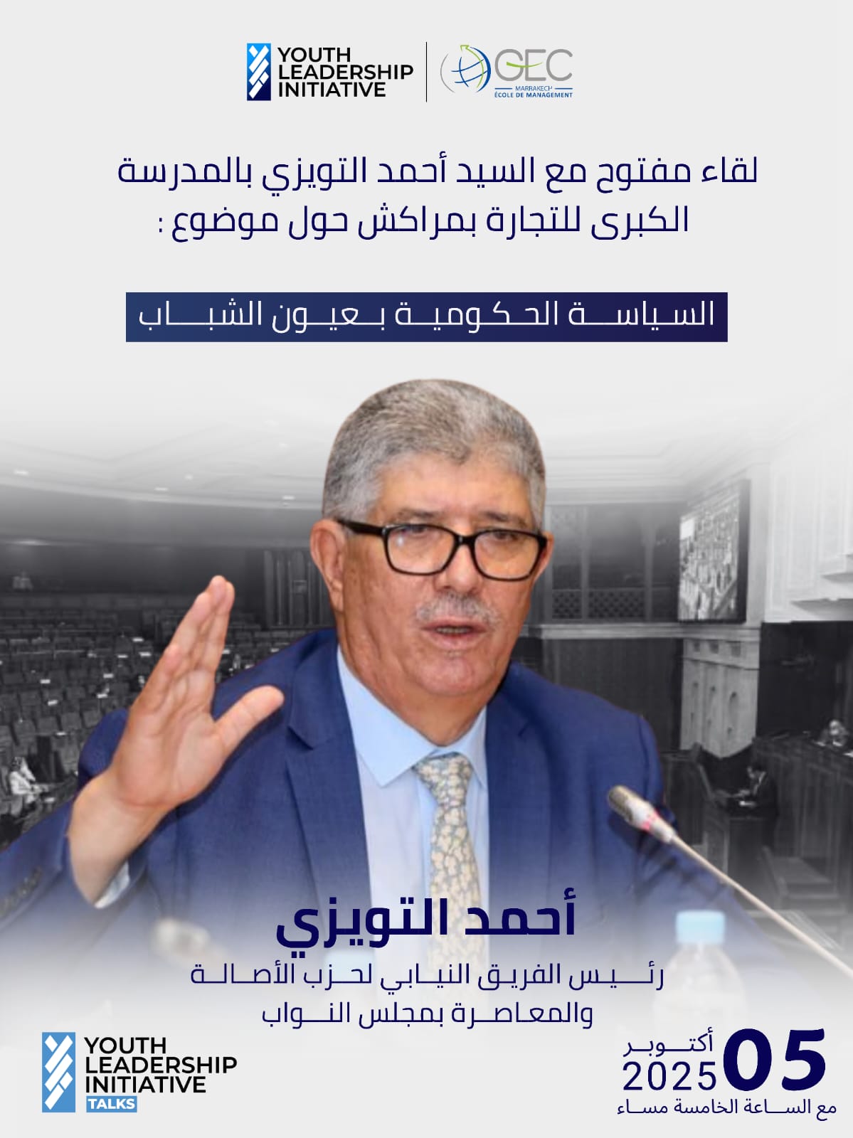 وحسب المنظمين، يشكل حضور التويزي، باعتباره أحد أبرز الوجوه البرلمانية الوطنية، فرصة للشباب لطرح تساؤلاتهم بشكل مباشر، ومناقشة أبرز التحديات والفرص المرتبطة بالسياسات الحكومية، إضافة إلى استكشاف آليات المشاركة السياسية والمساءلة الديمقراطية.