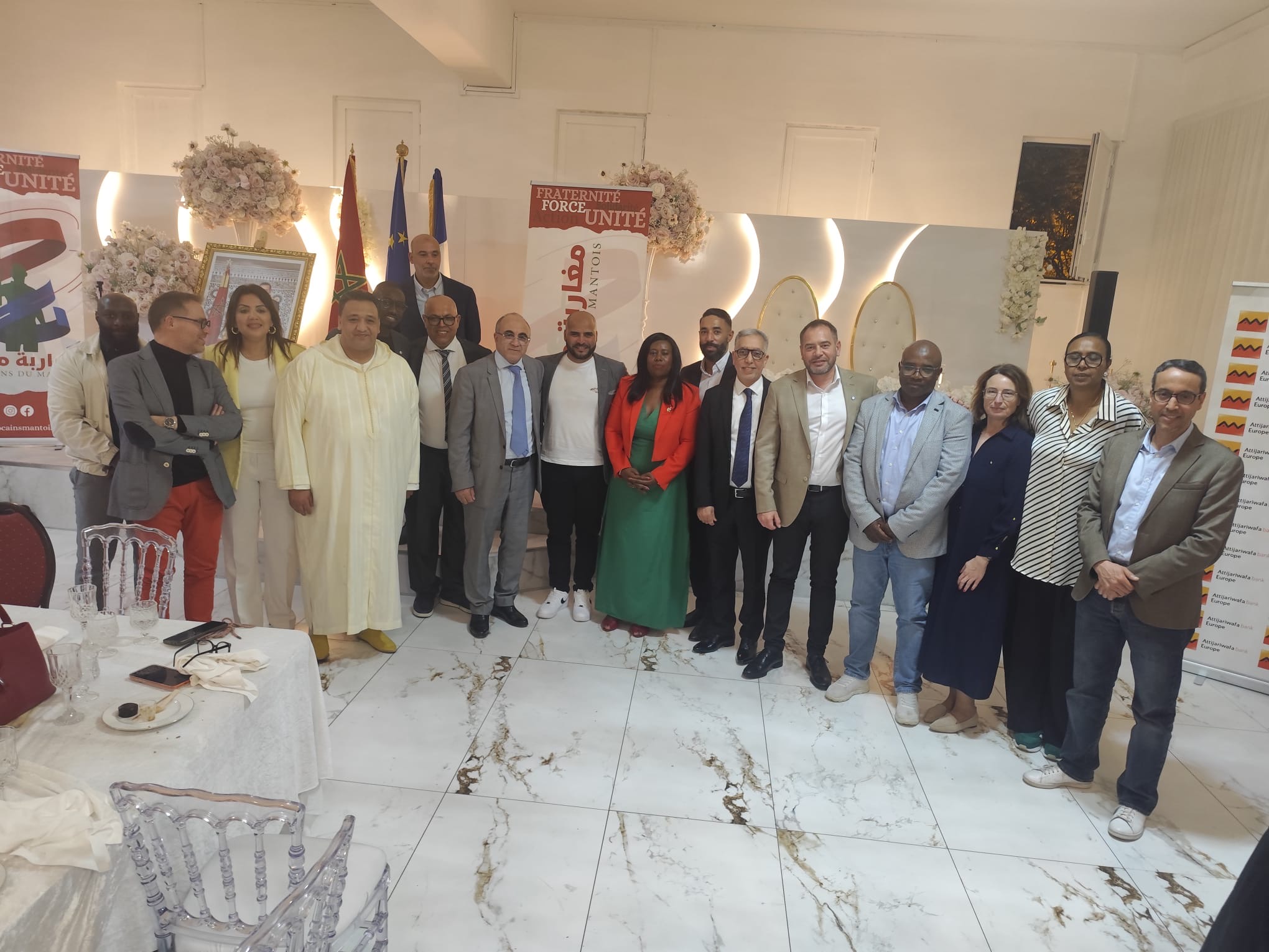 وشهد اللقاء حضور عدد من الشخصيات البارزة، من بينهم القنصل العام للمملكة المغربية السيد مصطفى البوعزاوي، إلى جانب عمدة مدينة مانت-لا-جولي Adama Gaye.
